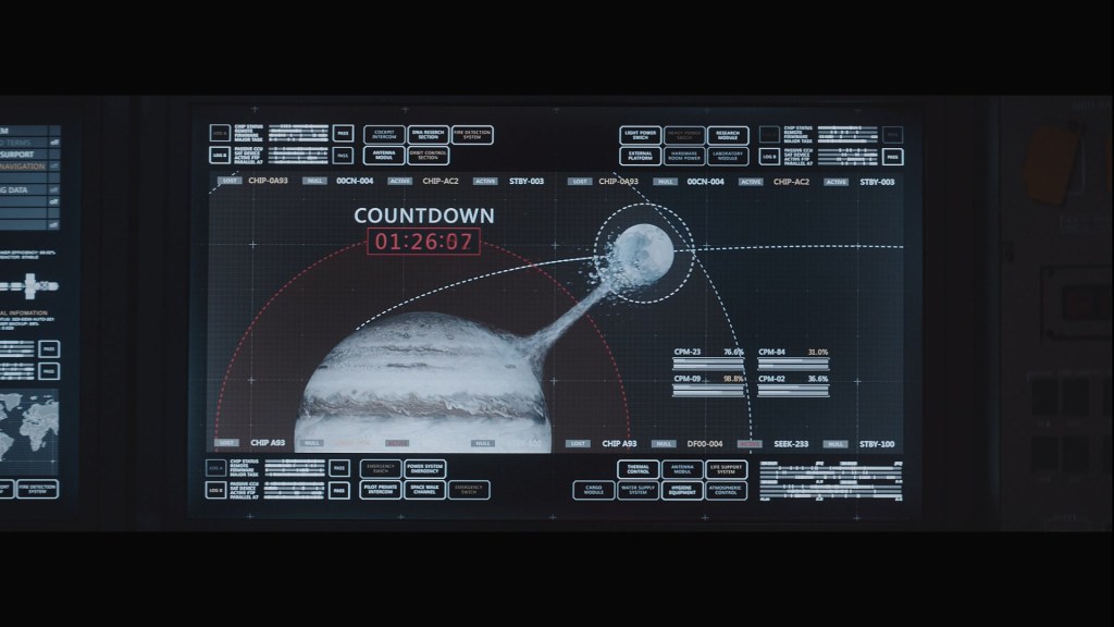 지구가 목성에 가까이 다가가자 지구의 이동경로가 갑자기 휙 꺾인다. 목성이 당기는 힘이 강해졌기 때문이라고 한다. 그런데 이게 가능한 일일까? 영화 제작자에게는 안타까운 일이지만, 이런 일은 절대 일어날 수 없다. 뉴턴의 중력이론에서는 총 중량만으로 궤도의 계산이 가능하다. 실제로 행성탐사선이 목성 부근을 지나갈 때 운동하는 궤도와 거의 똑같은 궤도로 지구도 지나간다. 차이가 난다면 지구는 행성탐사선과 다르게 질량이 많이 무거워서 지구가 부근을 지나갈 때 목성의 궤도도 눈에 띄게 변한다는 것이다.
