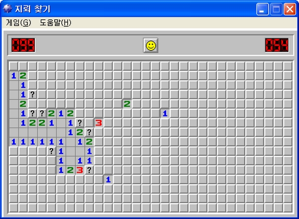 아래 예시는 윈도우XP의 지뢰찾기를 씁니다. 설명에 있어서 ‘?’ 표시와 함께 약간의 색깔을 사용합니다.