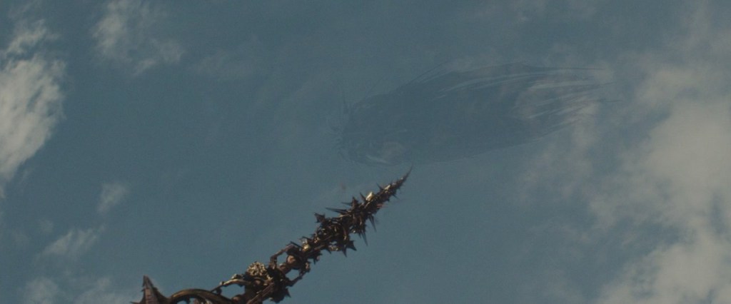 우주선이 하늘에서 검은 그림자를 보이려면 우주선의 배경이 되는 우주 전체가 밝게 빛나고 있는 상황이 아니면 안 된다. 그런 경우는 행성계 주변에 성운이 깔려있거나 우주가 무한히 크다면 설명이 가능하다. 그러나 영화 속에서도 행성 주변의 우주는 어둡기 때문에 불가능하다. 결국 설명할 방법은 없다.