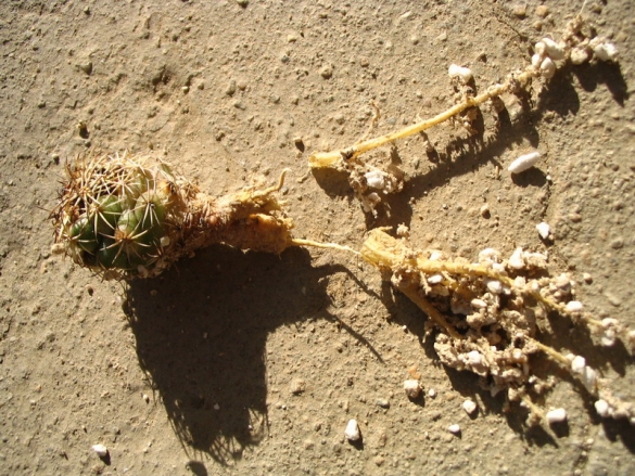 파광용이 하얗게 말라 죽은 것과는 달리 금마차는 뿌리는 빼빼 말라 거죽과 섬유질이 나눠지고, 선인장 중심의 체관이 섞으면서 생장점 부근의 가시가 검게 변했다.