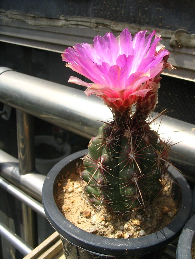 그 많은 선인장들 중에 대장은 뭐니뭐니 해도 ‘대통령’입니다. 오늘 소개해 드릴 꽃은 대통령 중에서도 희귀종인 ‘오색대통령’입니다. ‘오색’이란 것이 붙은 이유는 대통령의 중앙가시가 다섯가지 색으로 변하기 때문입니다. 주변가시의 색도 다섯은 안되지만 세가지 정도로 변합니다. (그런데 가시들을 물들이고 있는 색소들이 수용성이라서 물을 많이 접하면 녹아서 보통 대통령의 가시색인 흰색으로 바뀌곤 합니다.) 그리고 오색대통령이 가치를 인정받는 것은 가시색에 따라서 꽃의 색도 바뀌기 때문입니다. 오색대통령의 꽃은 그래서 보통 대통령의 꽃보다 훨씬 화려한 편이죠.