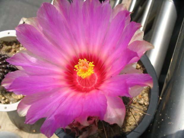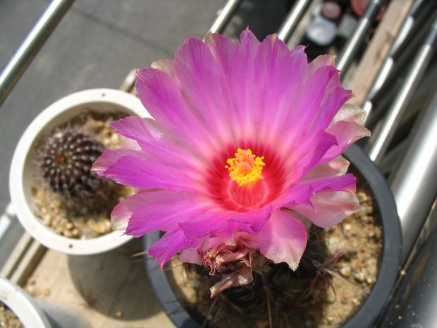 몸체에 비해서 꽃이 훨씬 큰 마밀라리아 속의 오색대통령의 꽃은 아무리 살펴봐도 사실 이름 값을 못 하는 것 같긴 합니다. 화려하기로는 작은 선인장으로서 대통령과 친구인 미니마가 훨씬 낫고, 크기로는 수수한 단모환 종류(이키노~ 속들)나 디스코칵투스 속들, 손가락선인장(백단)이나 흔한 게발선인장 종류들이 낫죠.