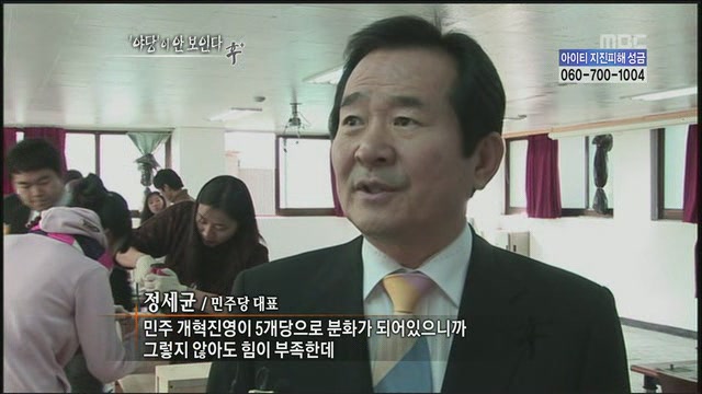 MBC 후 플러스 <애플의 공습>을 시청한 뒤 호기심이 발동하여 2010.02.11 방송한 <야당이 안 보인다> 편도 살펴봤다. 여기에서 난 민주당이 쪼그라드는 이유를 확인할 수 있었다.