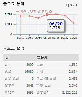오늘 보니 블로그 글 수가 5000이라 찍혀 있었다.
