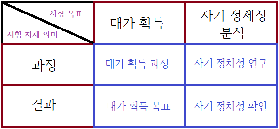 가지 측면에서 생각해야 한다. 첫 번째는 시험 자체의 의미를 과정이나 결과로 보는 것이고, 두 번째는 시험 목표가 무엇인지에