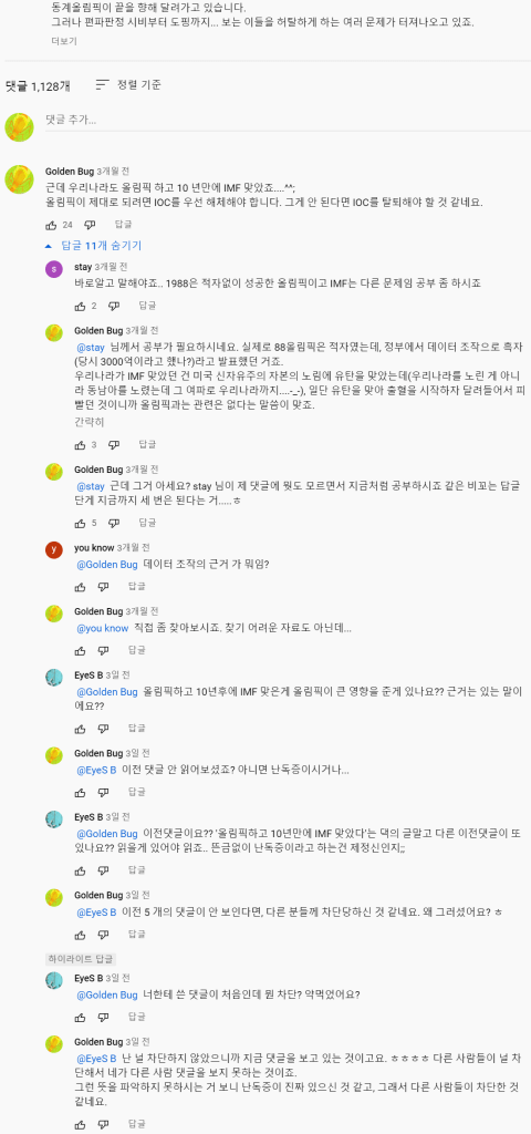 얼마 전에 유투브에서 있었던 일