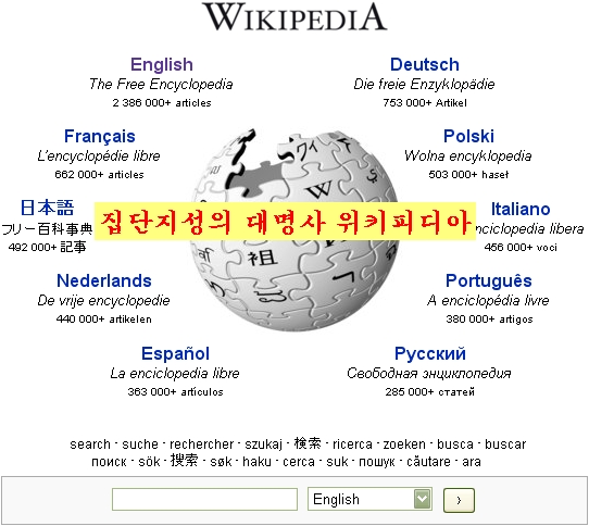 위키피디아(wikipedia)는 대규모 백과사전으로서 지금까지 지구상에 있어왔던 단일지식체계로서는 전무후무한 규모를 쌓았다. 특히 영어 위키피디아의 경우 238’7798 개의 글이 작성되어 있다1. 이 컨텐트는 부족한 것도 있겠지만, 학술적인 내용에서 상식까지 충실한 컨텐트가 무수히 등록되어 있다. 생각할 수 있는 모든 것이 위키피디아에 등록된다고 할까? 특히 영어 위키피디아는 전문가 참여가 활발하여 내용이 충분히 전문적이고 풍부한 것이 장점이다. 이미 그 규모면에서 기존의 최대 백과사전이라던 브리태니커를 압도했고, 앞으로 사전 시스템의 모범적인 모델이 된 것이라고 생각한다.