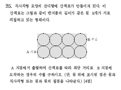 1. 25번 문제 사선으로 점선 이어서 보면 쉽게 풀던 사각형 길찾기 문제랑 똑같은데 말이죠. ㅎㅎㅎ 그게 요즘은 초딩 교과서에 나오나 보군요. ^^;;