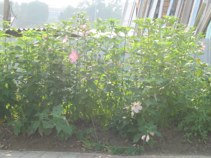 강화도에서 길가에 심어져 있는 접시꽃을 보았습니다.