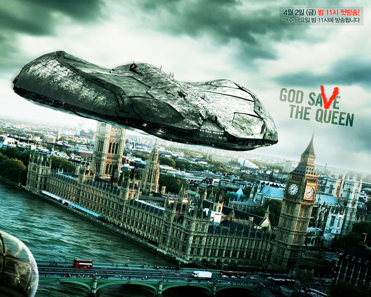 2009년 드라마에선 V를 visitors, 즉 방문자의 약자로 사용한다고 하던데, 옛날 4부작 판에서는 외계인의 정체가 알려진 이후 꼬마들이 외계인 포스터에 스프레이를 마구 뿌려 안 보이게 만들자 어떤 할아버지가 “그렇게 하는게 아니야. 잘 봐두렴.” 하면서 커다랗게 V를 그린 것으로 기억합니다. 그래서 옛날판 포스터를 보면 스프레이로 뿌린 것처럼 표시되어 있죠. ^^ 즉 옛날판에서 V는 승리를 뜻하는 의미로 쓰였는데, 다시 만든 판에서는 그냥 외계인을 방문자로 부르면서 쓰이는 말로 바뀐 것 같습니다. 개인적인 취향입니다만 옛날판 V 뜻이 더 멋진 것 같네요. ^^