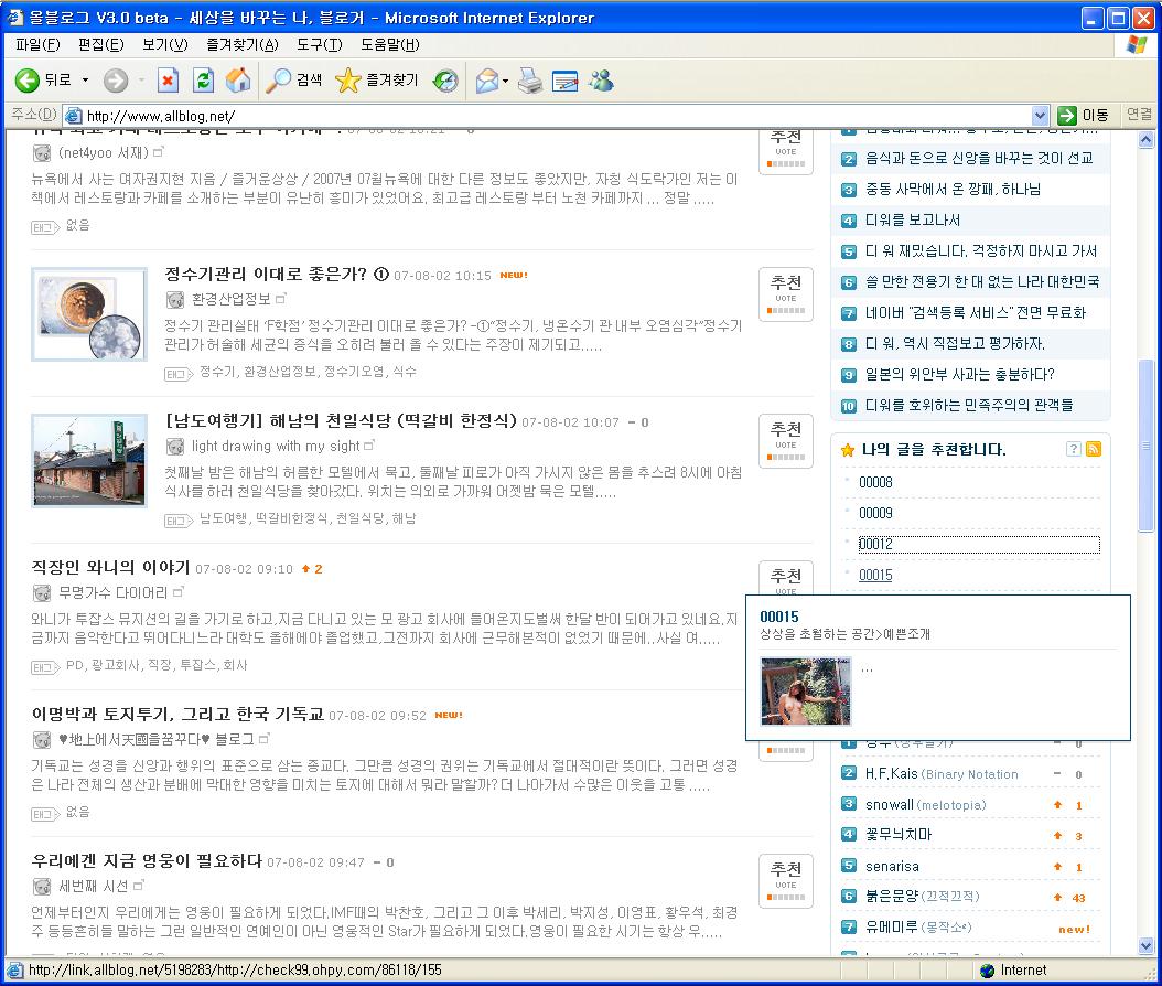 갑자기 올블 “나의 추천글”에 이상한 제목의 글들이 등록되기 시작했습니다.