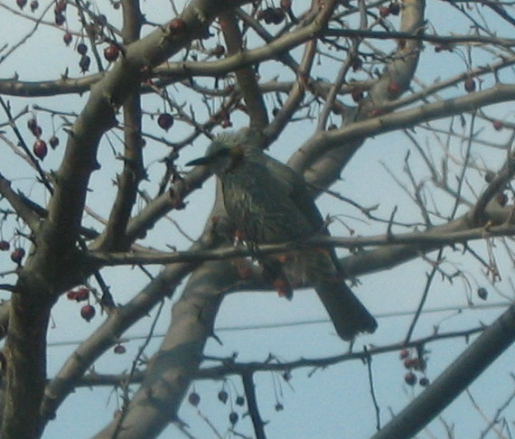 아버지는 약으로 쓰려고 산사과를 한 봉지 따셨다. 산사과가 매우 작기 때문에 산사과 한 봉지는 굉장히 많은 분량이다. 아버지 말씀이 산사과를 따고 있자 어디선가 날라온 콩새가 빙글빙글 돌면서 따지 못하게 하더란다…^^
