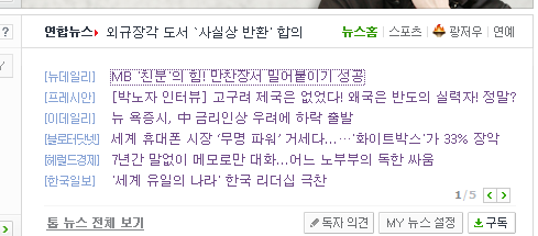 가장 위에 있는 ‘뉴데일리’는 MB측근에 의해 운영되는 언론사다. 그 밑의 밑에 있는 ‘이데일리’는 박근혜 측근에 의해 운영되는 언론사인데 이번 G20과 사대강 등에 대해서 소극적 보도로 일관하는 모습이 관찰된다. 괜히 끼어들었다가 불란을 일으키지 않으려는 듯한 움직임이다. 포스트 대통령 박근혜를 위한 움직임이라고 해야 할 것이다.