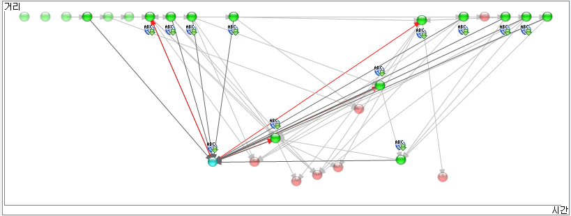어쩌다 보니 emule에 예전엔 없던 트리 기능을 발견했다. 검색하는 각 단어에 따른 업로드/다운로드를 보여주는데, 각 노드는 빨강/녹색/파랑/노랑의 특성을 보여준다. 파랑은 업로드 하는 것, 빨강은 다운로드만 하는 것, 파랑은 활발히 업로드/다운로드하는 것을 뜻한다. 노랑은 검사 도중인 노드를 뜻해서, 잠시 뒤 다른 색깔로 바뀐다.